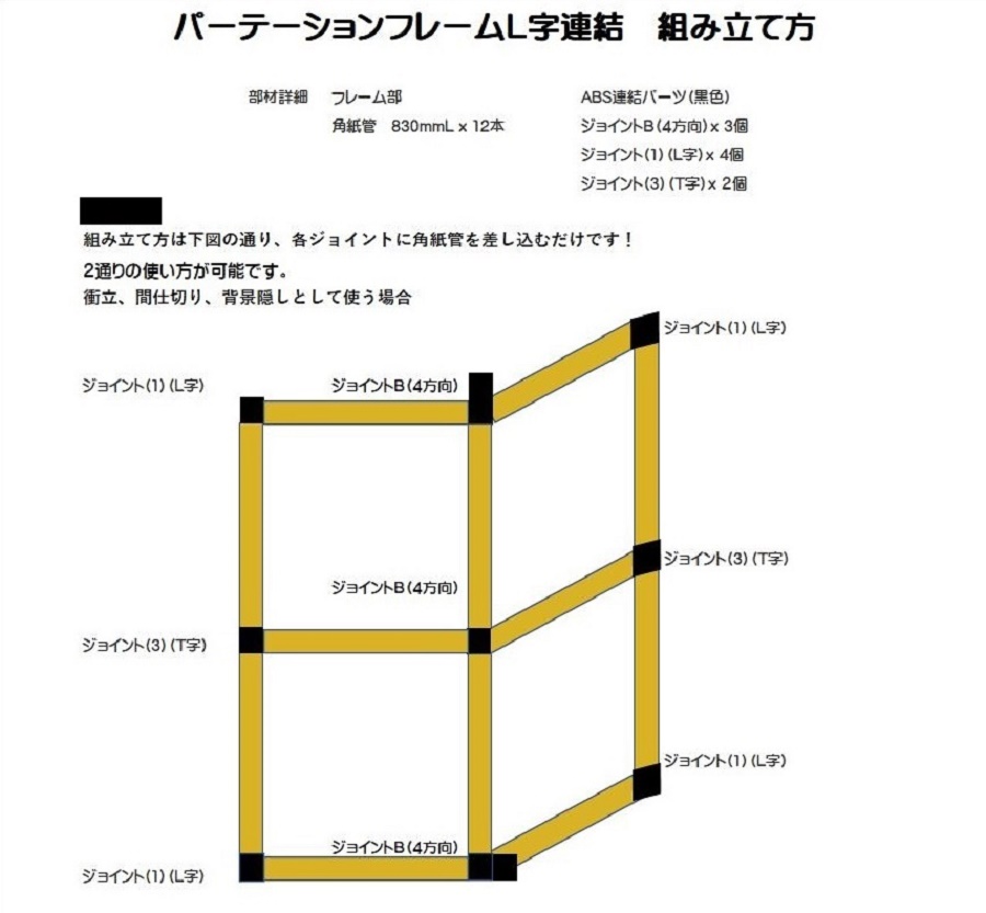 2セットを連結してL字型として! 柄付きシートであれば間仕切りや背景隠しとして